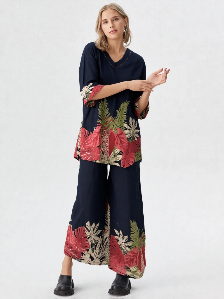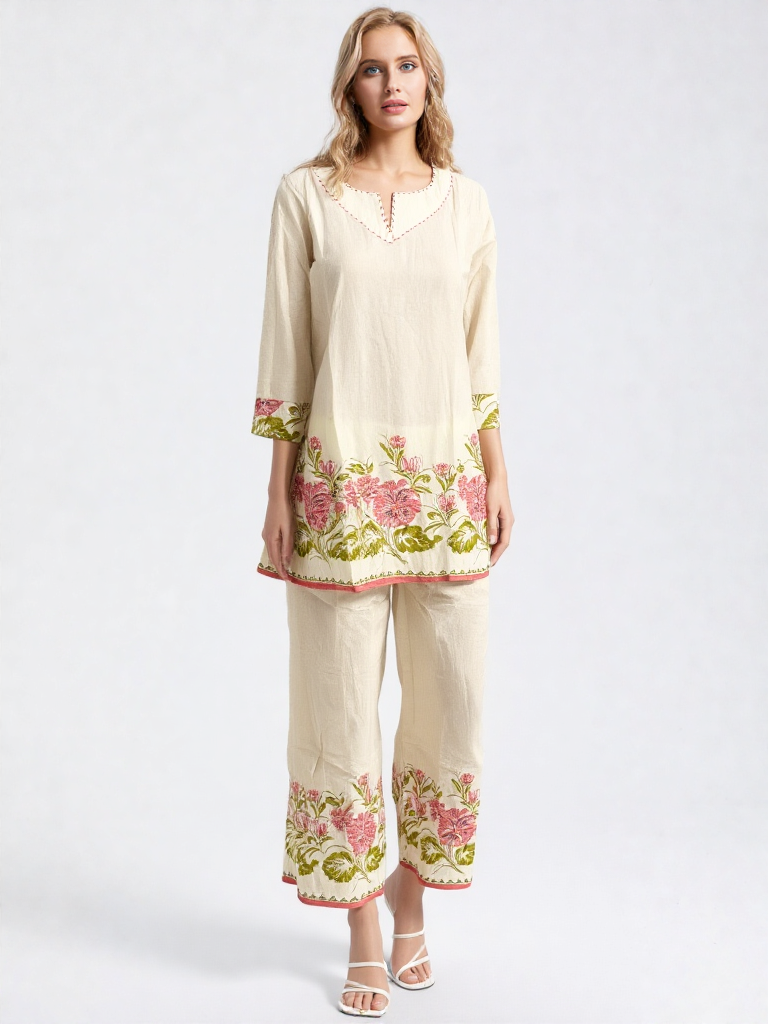 Design & Detailing- printed, 3 Quarter Sleeves, Full Length Lower