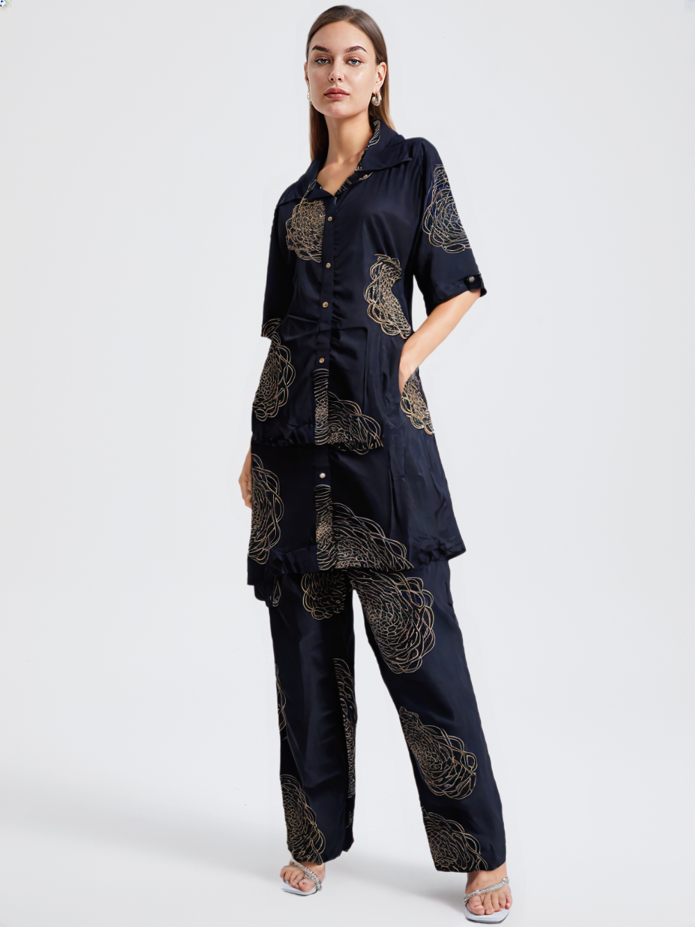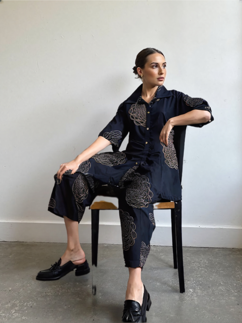 Design & Detailing- Printed and hand Kantha Stich, Half Sleeves, Full Length Lower,