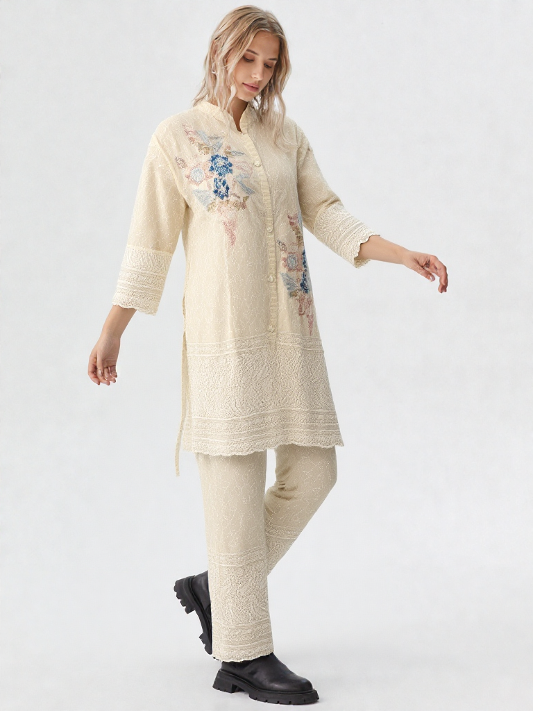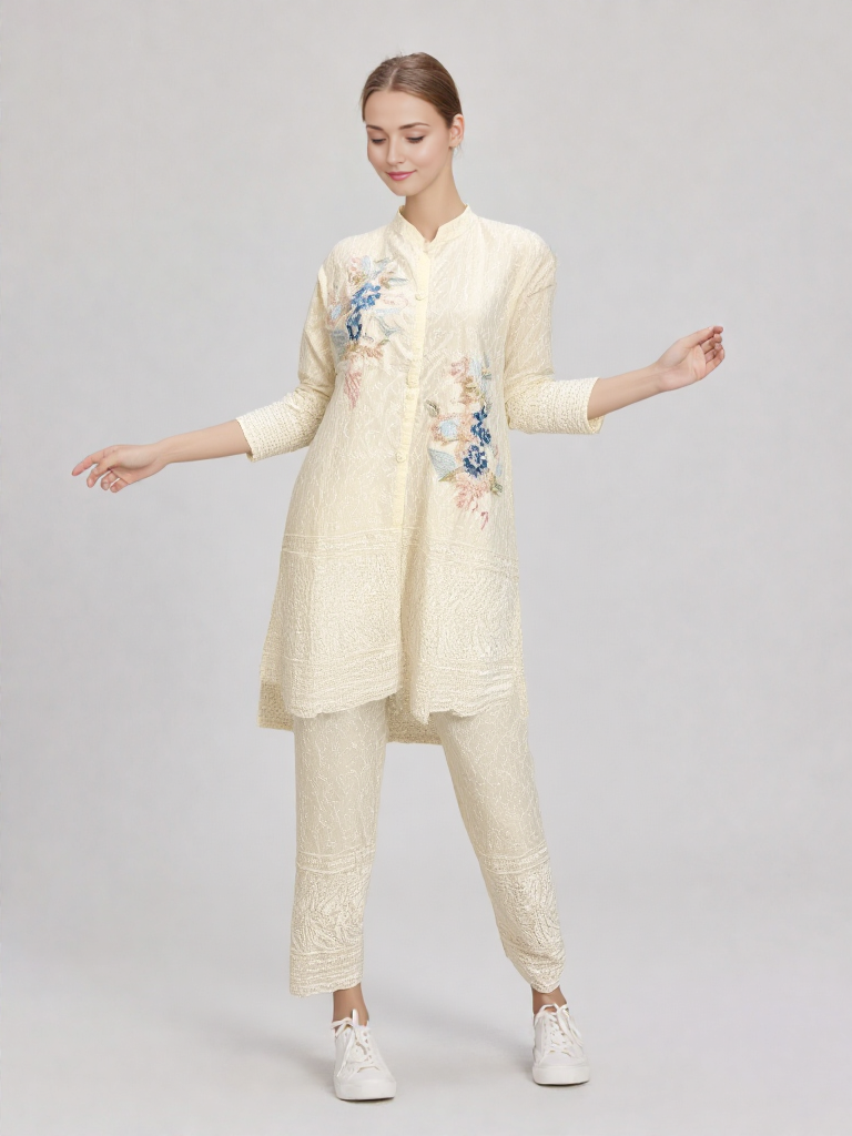 Design & Detailing- Chikankari with siquin embroidered, 3-Quarter Sleeves, Full Length Lower, Inner lining in both upper and lower,